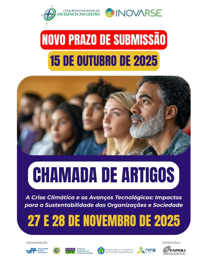 | CNEG XIX Congresso Nacional de Excelência em Gestão INOVARSE – Simpósio de Inovação e Responsabilidade Social Participe do CNEG/INOVARSE 2025: A Crise Climática e os Avanços Tecnológicos: Impactos para a Sustentabilidade das Organizações e Sociedade EVENTO ONLINE Nos dias 27 e 28 de novembro de 2025, junte-se a pesquisadores, gestores e líderes de opinião em um evento totalmente online que debaterá os impactos da crise climática e os avanços tecnológicos na construção de um futuro mais sustentável. O CNEG/INOVARSE 2025 é o espaço ideal para trocar conhecimentos, apresentar estudos e fórmulas inovadoras que promovem responsabilidade social, sustentabilidade e impacto socioambiental alinhados à Agenda 2030 da ONU. Não perca a oportunidade de fazer parte dessa discussão transformadora e contribuir para uma gestão organizacional mais sustentável e inovadora. Inscreva-se já e envie seus trabalhos científicos para enriquecer ainda mais esse debate vital! As apresentações de artigos científicos ocorrem ao longo dos dias 27 e 28 de novembro em sessões temáticas online de acordo com programação a ser divulgada. 27 e 28 de novembro de 2025 Prazo para submissão de artigos: 15 de outubro de 2025www.cneg.org |
